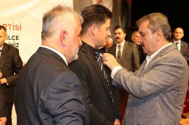 Tek aday olan Yusuf Karaoğlu'nun ilçe başkanı seçildiği kongrede Destici, partiye yeni katılan üyelere rozet taktı.