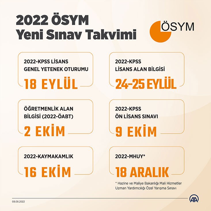 ÖSYM, 2022-KPSS ile ilgili yeni sınav takvimini açıkladı. 2022-KPSS Lisans Sınavı’nın Genel Yetenek oturumu 18 Eylül, Alan Bilgisi oturumu 24-25 Eylül’de yapılacak.