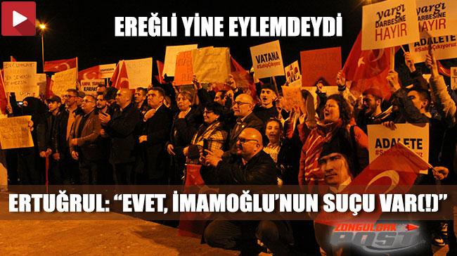 Türkiye Belediyeler Birliği Başkanı ve İstanbul Büyükşehir Belediye Başkanı Ekrem İmamoğlu'nun gözaltına alındıktan dört gün sonra tutuklu yargılanmak üzere Silivri Cezaevi'ne hapsedilmesiyle birlikte yurt genelinde daha da artan adalet eylemlerine Zonguldak'ın en büyük ilçesi Karadeniz Ereğli'de de devam edildi.